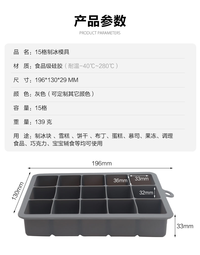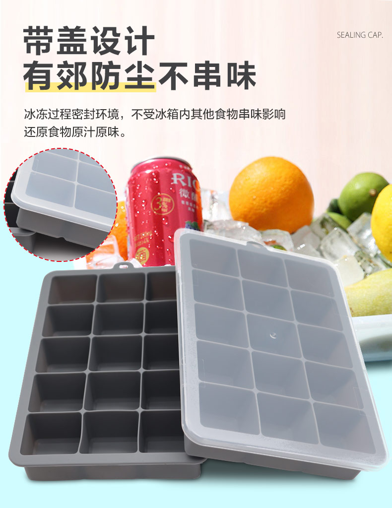 硅膠冰格15格 帶蓋家用方形制冰盒