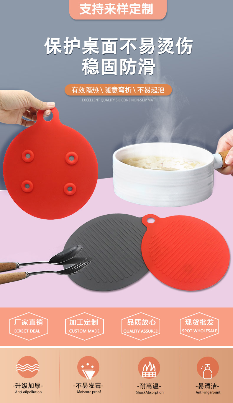 【簡(jiǎn)介】圓形磁鐵硅膠隔熱餐墊 防燙墊 廚房防水防滑鍋墊 硅膠餐墊