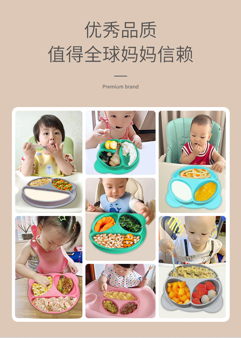 您的位置:首頁(yè) > 產(chǎn)品中心 > 硅膠嬰童用品 > 硅膠碗 > 吸附式硅膠分格餐盤