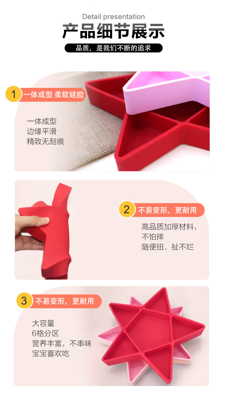 您的位置:首頁 > 產(chǎn)品中心 > 硅膠嬰童用品 > 硅膠碗 > 硅膠兒童五角形狀餐盤 嬰兒輔食碗 廠家直銷可定制