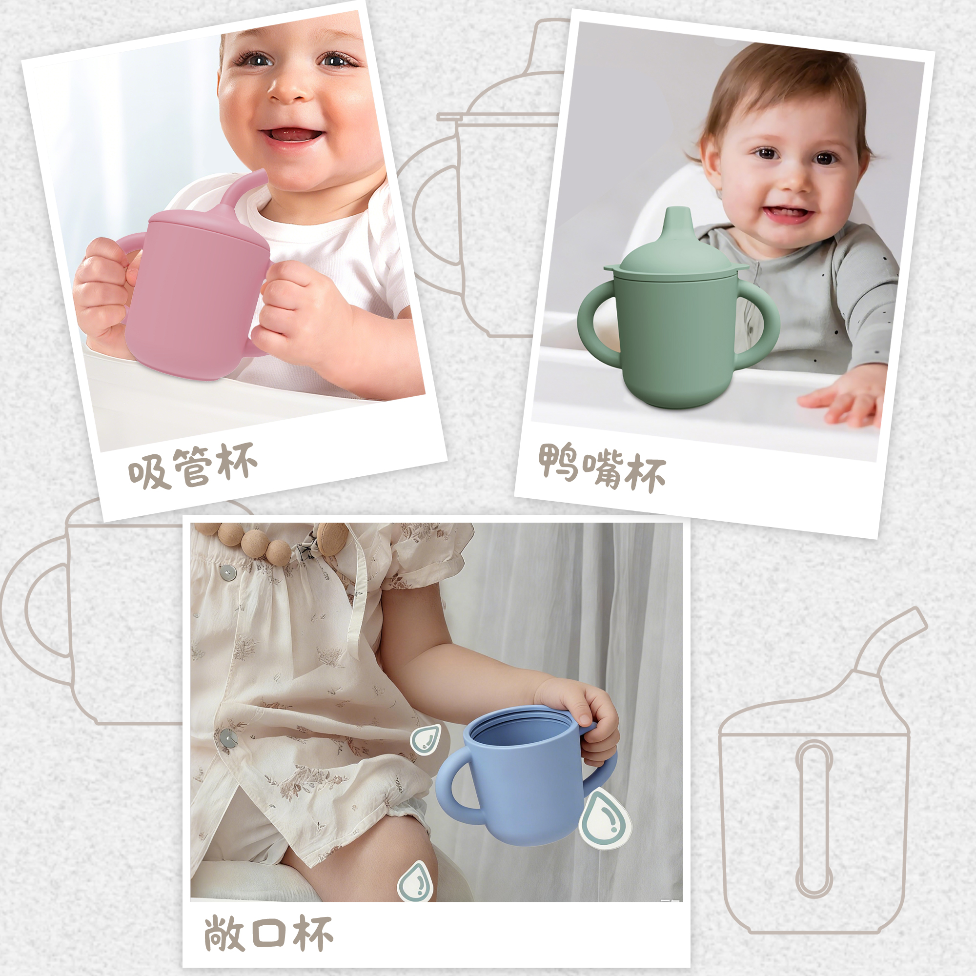 寶寶硅膠直飲鴨嘴杯喝水杯雙耳學(xué)飲杯雙蓋合一