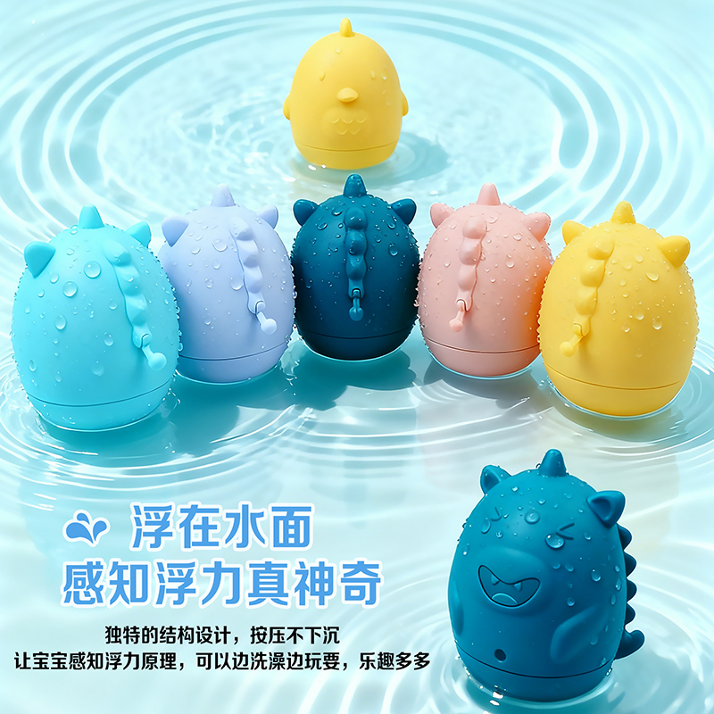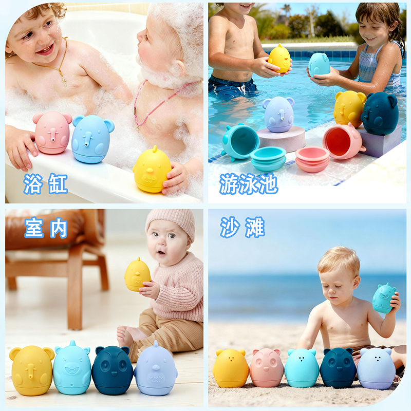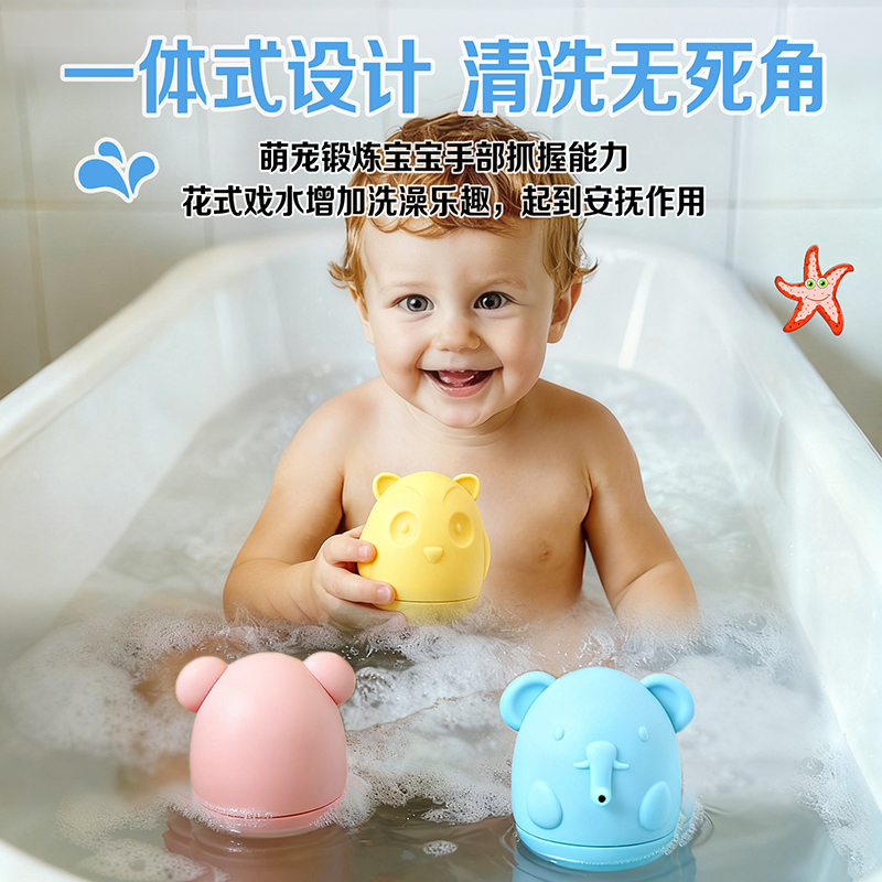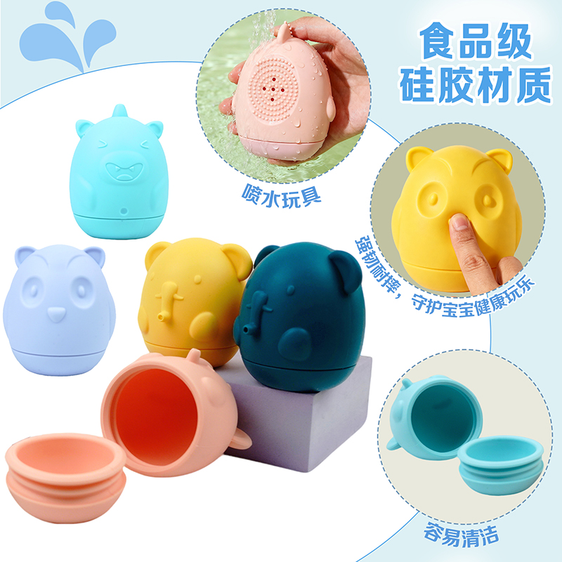 食品級硅膠擠水玩具硅膠嬰兒沐浴噴水兒童洗澡益智寶寶戲水4件套