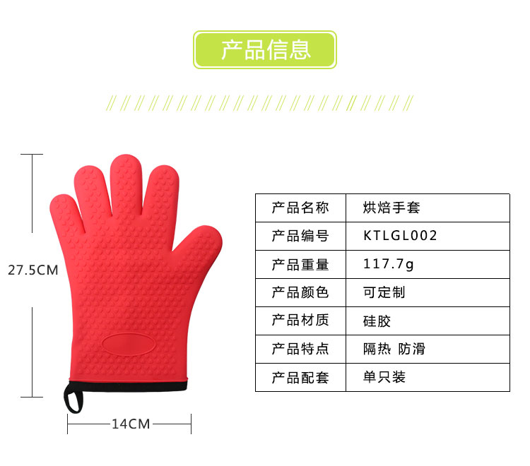 產(chǎn)品名稱硅膠烘焙手套產(chǎn)品編號KTLGL002