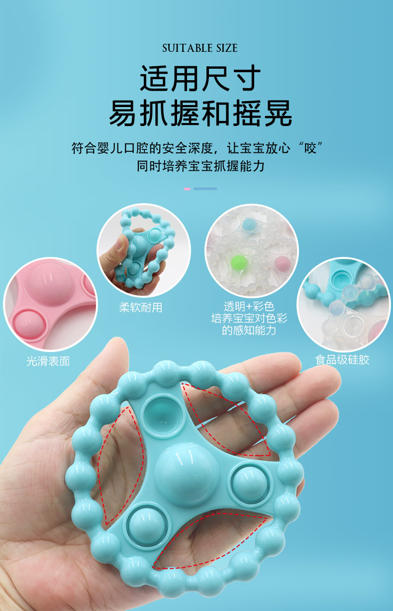 簡(jiǎn)介:純凈硅膠磨牙玩具,采用食品級(jí)液態(tài)硅膠不含BPA,