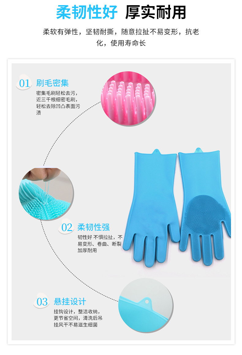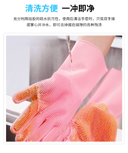 3.手套易清洗徹底不滋生細菌,這一點是很多清潔用品都做不到的,油脂、醬油、醋、污垢等等都無法有力附著在硅膠表面,而其他比如鋼絲球、海綿塊、洗碗布等等材質(zhì),都做不到,使用硅膠洗碗手套實在是讓人放心。