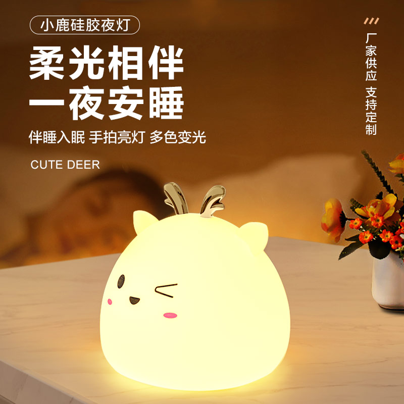 小鹿硅膠小夜燈 拍拍感應(yīng)燈喂奶起夜燈